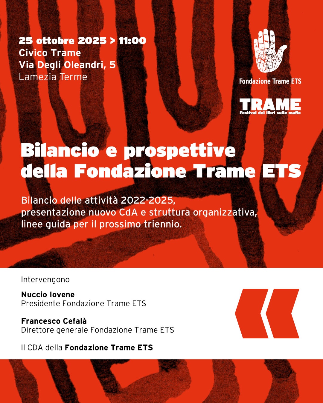 La Fondazione Trame ETS racconta le attività del triennio 2022–2025, presenta il nuovo Consiglio di Amministrazione e la struttura organizzativa rinnovata, delineando le linee guida per i prossimi anni.